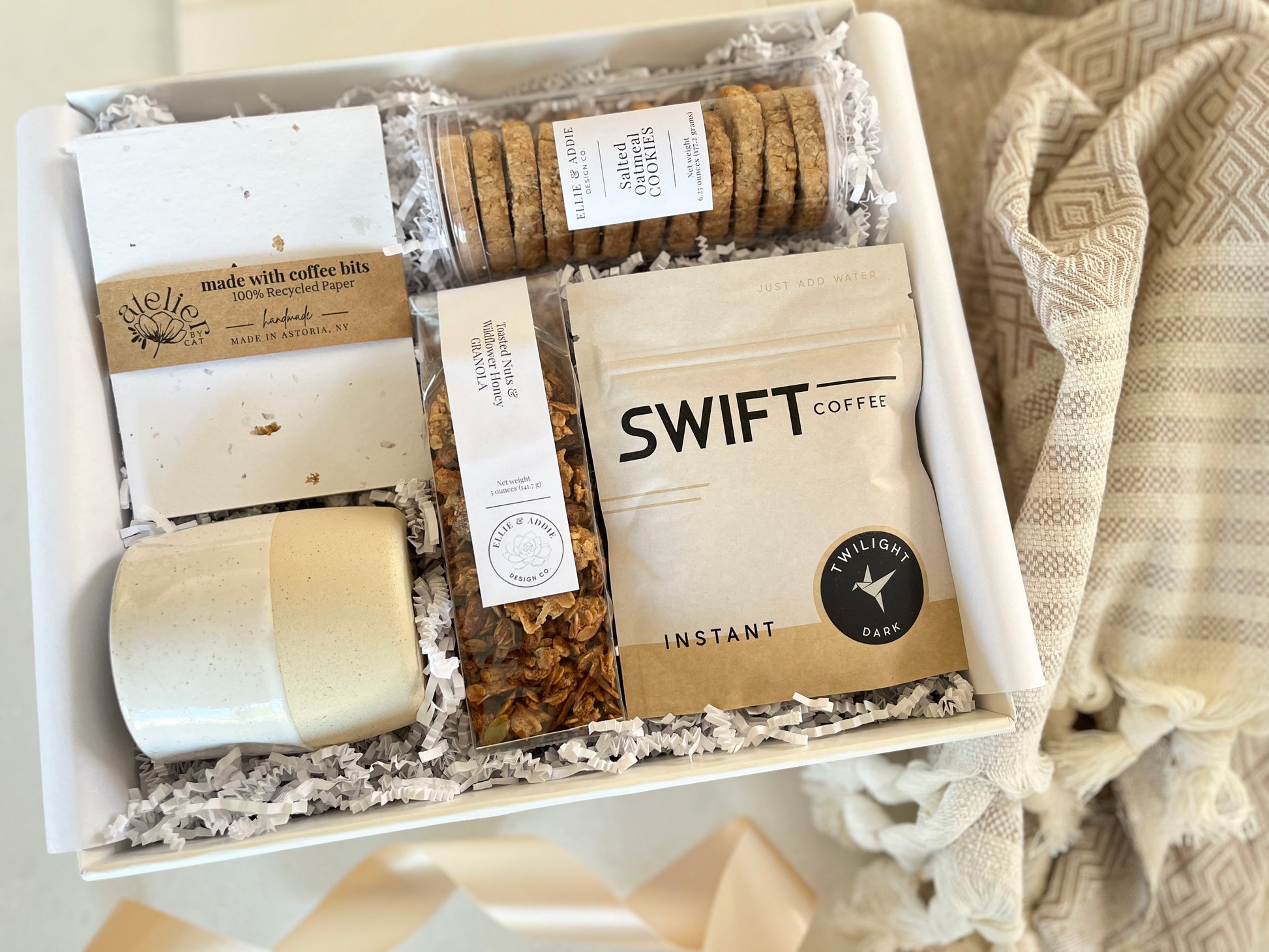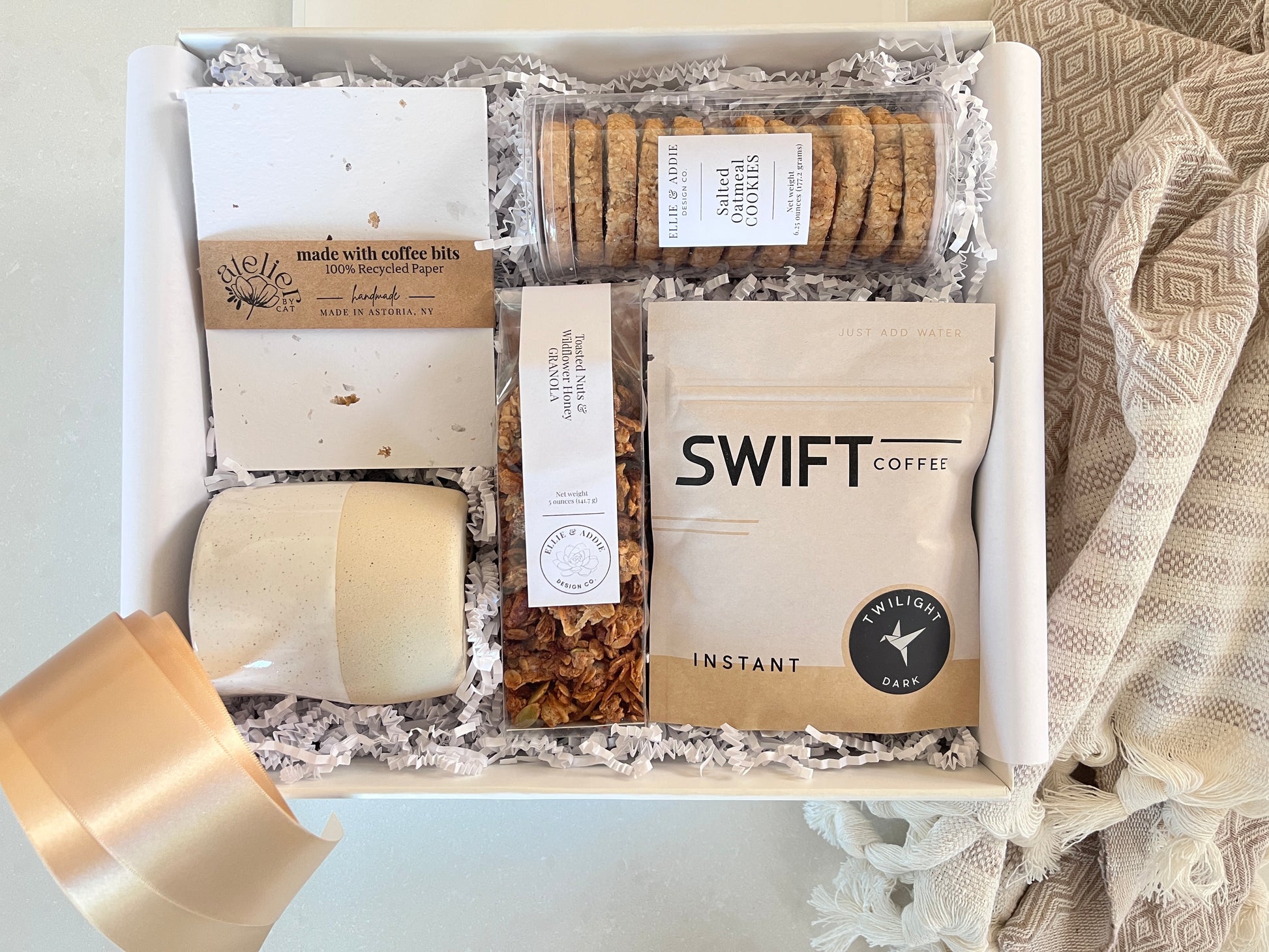 SUBSTITUTIONS | We proudly feature many small-businesses and local artisans, thoughtfully curating their exceptional creations in our gift boxes. Occasionally, due to the limited availability of these handcrafted items, a product may be unavailable at the time of your order. In such cases, we may replace it with a similar item, of equal or greater value. Any substitution is chosen with care to maintain the same high standards of quality, design, and aesthetic excellence.
